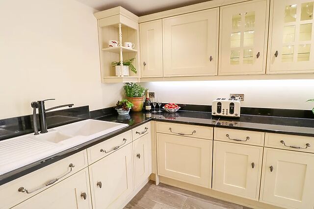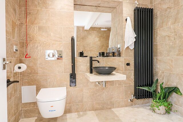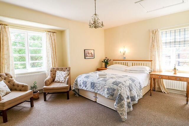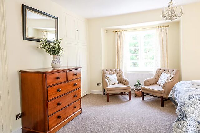 This charming accommodation sleeps up to seven guests across three beautifully appointed bedrooms, including a ground-floor queen-size with an en-suite wet room, ensuring accessibility for all.