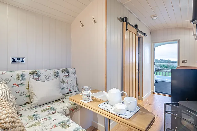 The accommodation sleeps two and is a beautifully designed shepherd's hut, complete with all the comforts of home.