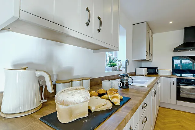 A fully equipped kitchen and a cosy dining area make for perfect family or group meals. Step outside to find an inviting hot tub, where you can unwind and soak up the elevated countryside vistas.
