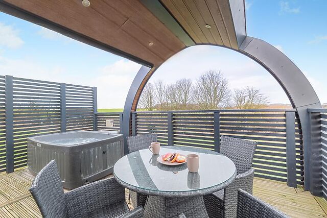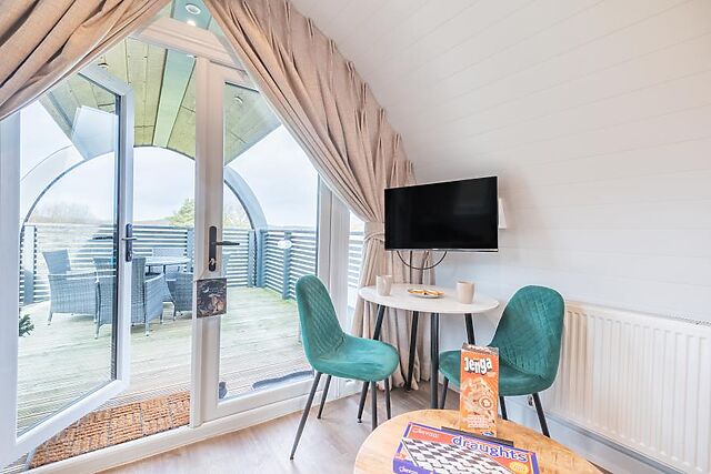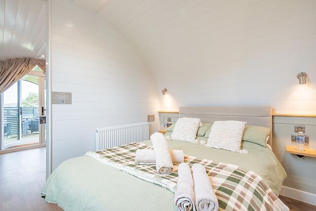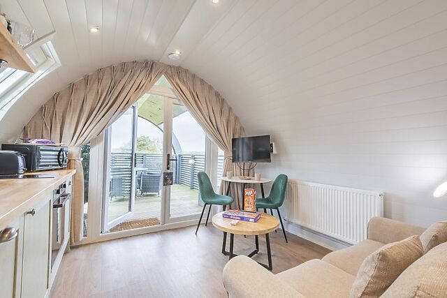 Wildlife enthusiasts mustn’t miss the nature reserves of Rigsby (10 miles) and Red Hill (12.5 miles), while beachgoers are sure to love the traditional atmosphere of the Lincolnshire coastline; Skegness and Ingoldmells are both within 17 miles and provide a classic fish-and-chips experience. Before stepping into this stylish glamping pod, take a moment to appreciate its stylish curved exterior and the peaceful greenery that surrounds it.