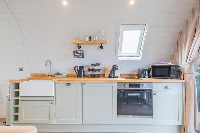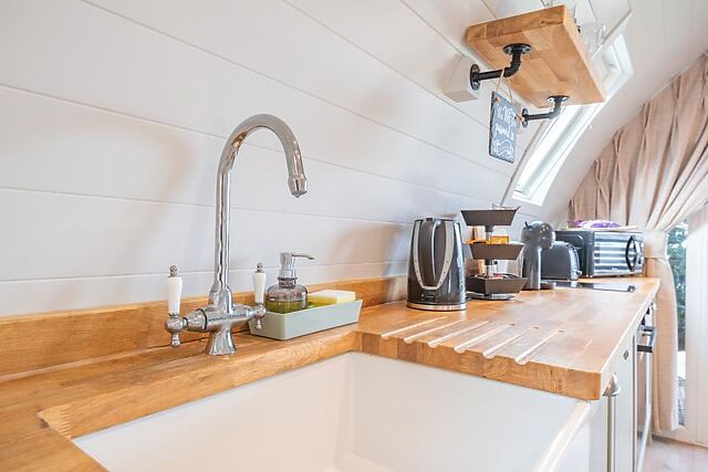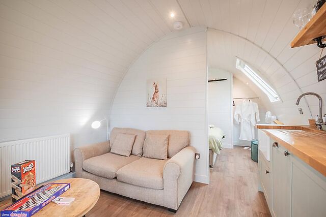 The kitchenette stands ready for cooking up classic Lincolnshire dishes, while the circular dining table offers the perfect spot to enjoy a romantic meal as you plan tomorrow’s adventures. At the end of each busy day away, retire to the plush double bedroom where luxury bedding, robes and slippers offer a spa-like experience.
