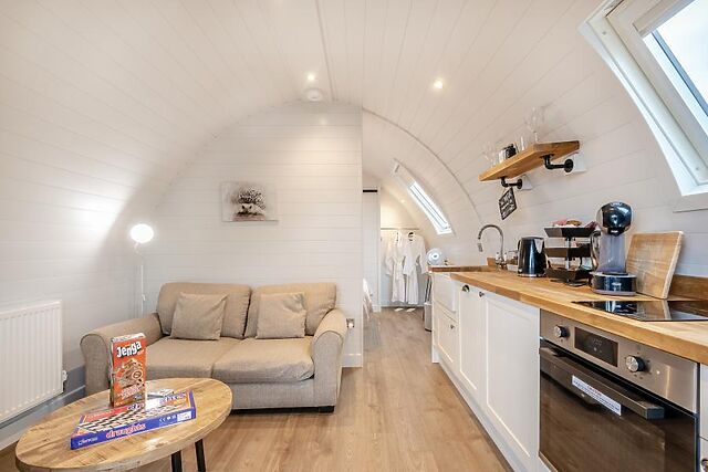 Snuggle up on the sofa after a busy day of walking and exploring. The table and chairs are perfectly positioned for a lovely meal beside the glass doors while you plan the next day’s adventure together.