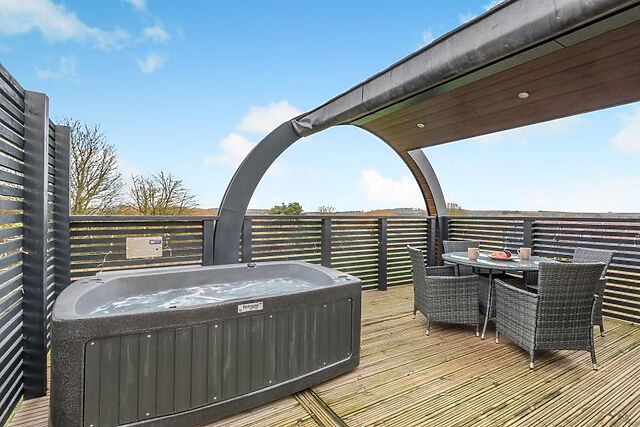 The sumptuous double bedroom is served by a stylish shower room. Relax and unwind in your private hot tub, enjoy al fresco dining on the private terrace or cosy up around the fire pit.