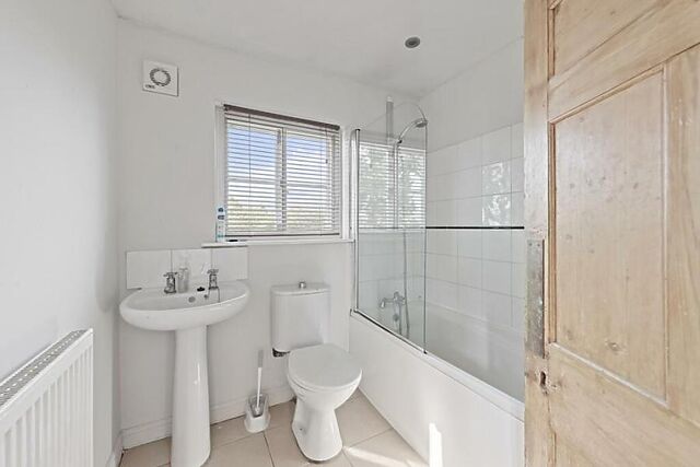 The sofa beckons weary travellers, as does the Smart TV. The family bathroom with a shower over the bath, and a WC is next.