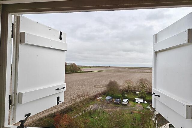 Up on the second floor, there is another double bedroom with charming wooden features and a chest of drawers for your belongings. Go up to the third floor and find a cosy reading nook with comfy chairs and wraparound bookshelves, while on the fourth floor, there is a vast viewing window with shutter doors and incredible panoramas of the sea to enjoy from the comfy seating.
