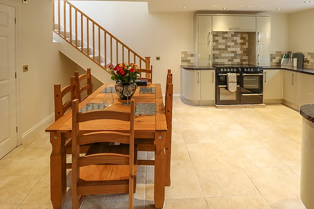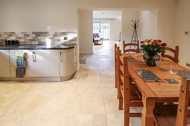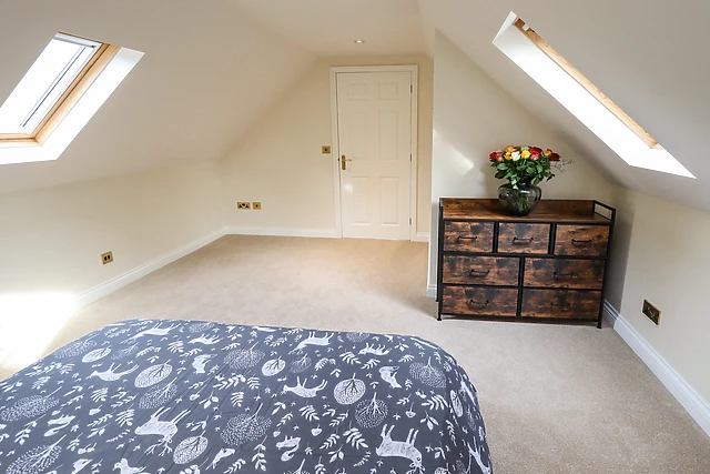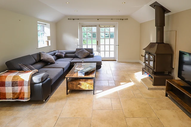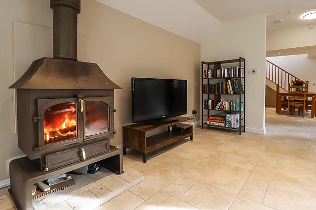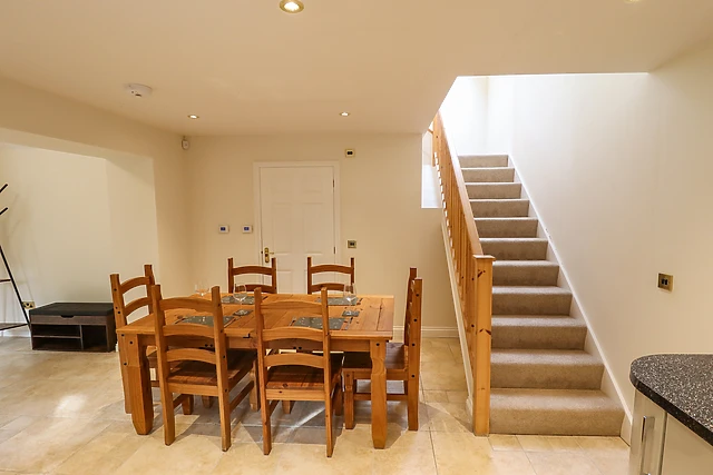 The open-plan living space boasts a well-equipped kitchen with all the necessary amenities for a week away, along with a dining area and sitting area with a toasty woodburning stove to cosy up in front of. After dinner at the dining table, freshen up in the ground-floor bathroom and if it’s already late, unwind in the plush, large double bedroom ahead of another adventure.