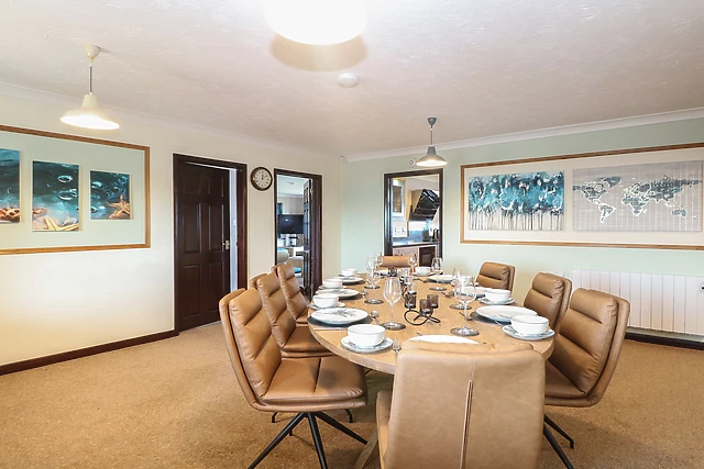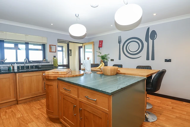 Head into the kitchen and make the most of the many amenities on offer, cooking up a storm which can be enjoyed in the formal dining room, or for a more informal setting, there is a porch with a second dining table and utility space where guests can grab a bite to eat with a view across the garden. Settle into the sitting area in the selection of sofas, warming your feet beside the woodburning stove, or head over to the snug/games room and test your skills at pool and darts, listen to some of your favourite hits by using the jukebox, and have an evening dance under the disco ball, or grab a good book and recline in the conservatory snug area.