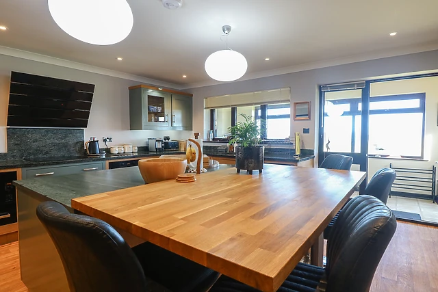 Guests can freshen up in the bathroom before settling into one of the four well-presented bedrooms, choosing between a king-size with en-suite, a super-king-size zip/link which can be set up as a twin on request, a second king-size or a twin. The wrap-around garden is an idyllic spot to indulge in the salty air, offering extensive lawn space, garden furniture for an alfresco affair, direct access to the local beach, and the added opulence of a bubbling hot tub boasting extensive sea views.