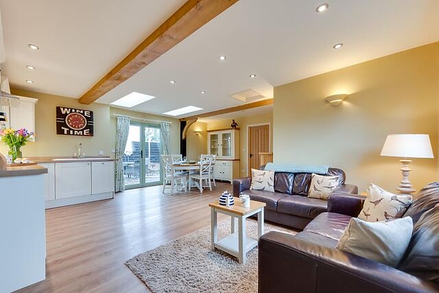 The historic city of Norwich (12 miles) makes a wonderful day out with its medieval lanes, castle, two cathedrals, and independent shops, restaurants and pubs, and if the seaside is calling, the delights of the North Norfolk coast are 20 miles away. Step through the front door into a spacious open-plan living space with seating, dining area and fully equipped kitchen.