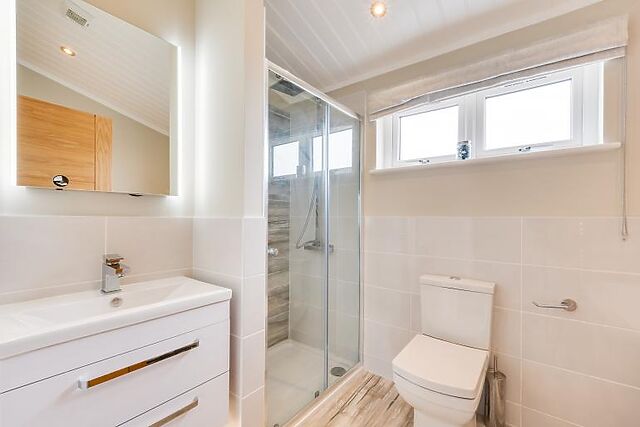 Enjoy your meals at the wooden dining table or unwind in the lounge area with its Smart TV and enclosed gas fire.