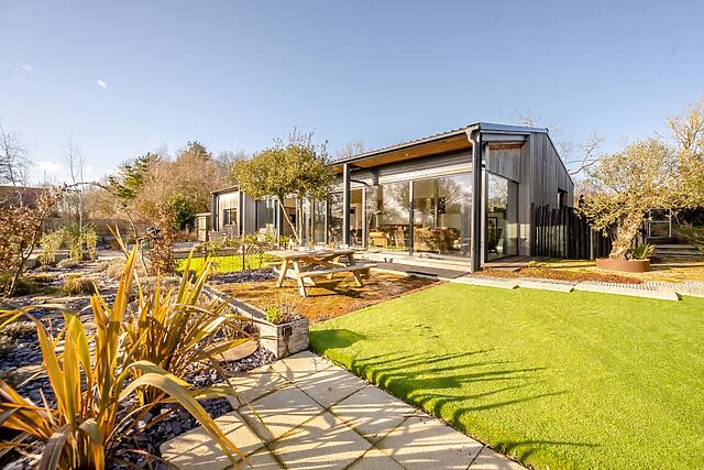 Welcome to 5 O'Clock Somewhere, a splendid log cabin located in the coastal town of Sheringham, Norfolk. This luxurious accommodation is perfect for a couple's retreat, offering a cosy and romantic setting.