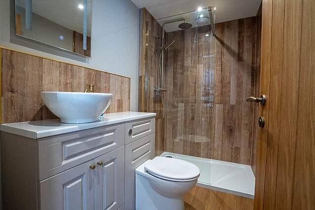 Choose between the king-size bedroom or the double bedroom, which can be set up as a twin on request. The ground-floor shower room exudes charm with its wooden accents and touches of gold, featuring a large walk-in shower for a luxurious experience.
