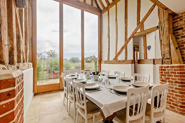 Discover the elegance of Dove Barn in Beccles, Suffolk, a luxurious barn conversion perfect for large families or groups of friends. This spacious property sleeps up to 10 guests in five beautifully appointed bedrooms, offering a blend of traditional barn features and modern amenities.