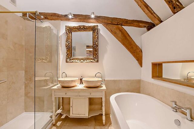 On the ground floor, you'll find three bedrooms, including a double, a twin, and another twin with countryside views. These share a Jack-and-Jill shower room.