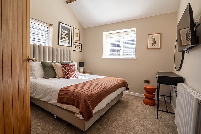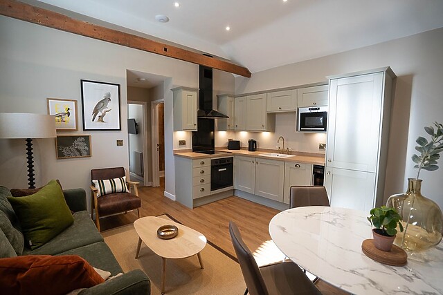 The kitchen is fully equipped with everything you need to prepare delightful meals, which can be enjoyed at the dining table. After a day of exploring, retreat to one of the two inviting bedrooms; a king-size room with a Smart TV and a double room, which can be converted into a twin on request, also boasting a Smart TV.