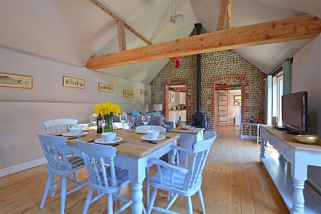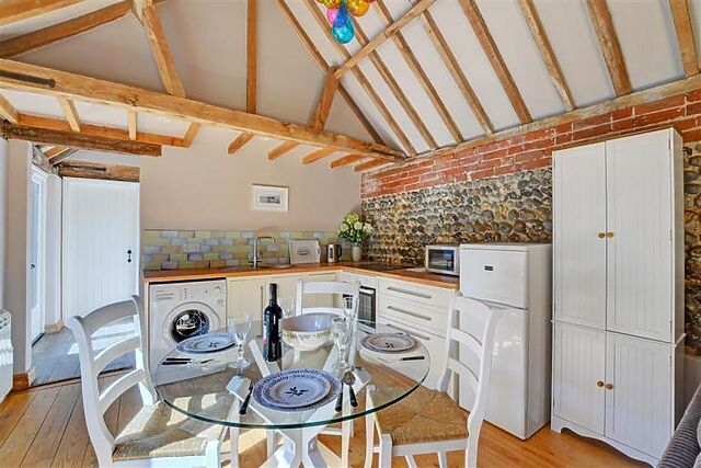Situated on the outskirts of Roughton, this small complex, comprising three barns in total, offers convenient access to local amenities, including a shop, pub, fish and chip shop, and fishing lake, all within half a mile. For a day at the seaside, visit the popular resorts of Cromer (4 miles) and Sheringham (7 miles), renowned for their sandy beaches, traditional piers, and delectable seafood.