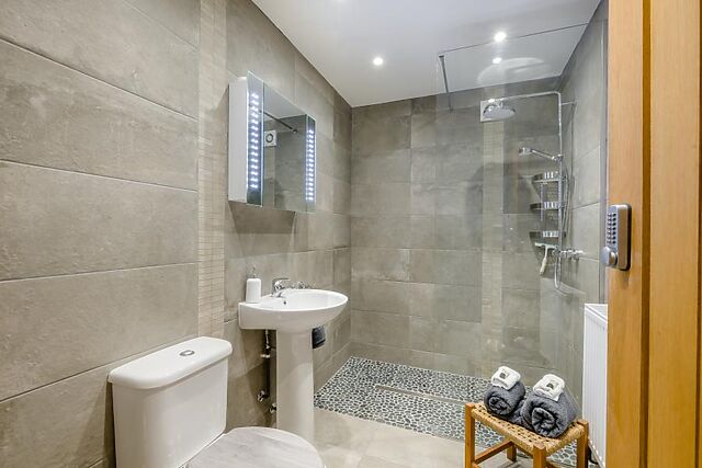 With electric heating and lighting, the hut remains warm and welcoming whatever the season – perfect for cosy nights after a day of exploring. A short stroll away is a separate shared cabin, providing your own private shower room and WC, along with a well-equipped communal kitchen and dining area.