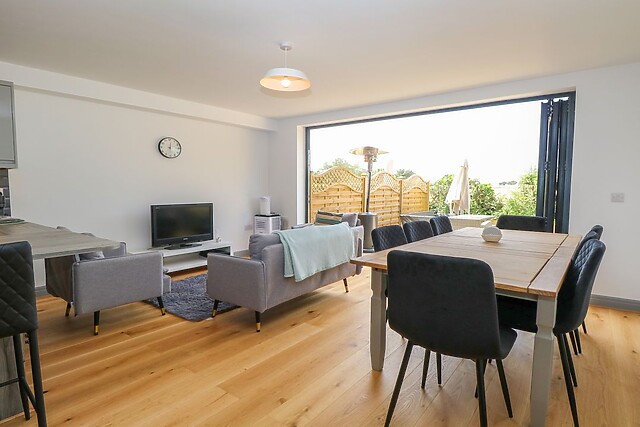 The contemporary open-plan living space is the heart of the home, comprising a kitchen, dining area, and sitting area, where you can relax and unwind after a day of exploring the surrounding countryside. Step outside to the enclosed, rear, west-facing paved garden with stunning countryside views, the perfect setting for enjoying a morning coffee or evening glass of wine in the quiet setting of Henham 3 Bernaleen Cottages.