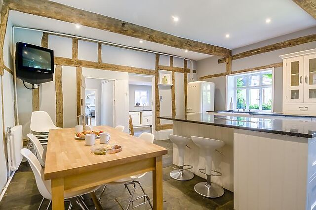 Let off some steam before bedtime in the retro arcade-style games room before retiring to one of the nine bedrooms across the first and second floors – each embrace beautiful period character and lovely countryside views. Outside, the large garden offers a sprawling lawn, tennis court, basketball court and a pretty patio to enjoy.