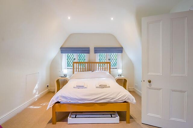 The lounge features a projector screen perfect for a film night, whilst the ‘butler’s bedroom’ space offers versatility as it can be used as a peaceful snug or another bedroom to cater for additional guests. Combining contemporary charm with original features, the kitchen/diner will inspire you to whip up something delicious to enjoy with the whole party seated in the handsome dining room.