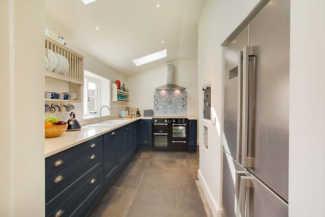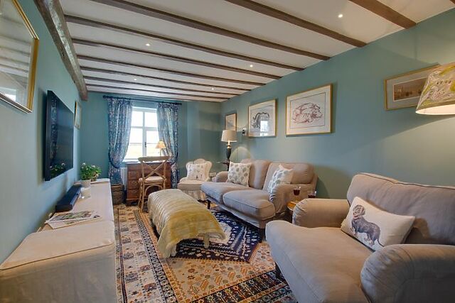 Step inside and choose between two inviting spaces to relax: a cosy lounge with an open fire and a snug with a Smart TV. The well-equipped kitchen features a range-style cooker, dishwasher, and double fridge/freezer, making meal preparation a breeze.