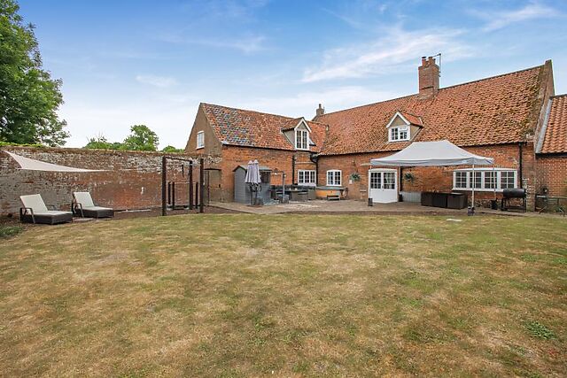 The vibrant city of Norwich is 24 miles away. The Grade II-listed farmhouse is full of rustic charm, with its red brick exterior, exposed beams, and country cottage decor.