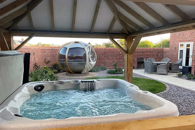 Step outside to discover the enclosed landscaped garden, complete with a hot tub under a gazebo, a garden pod, and a built-in barbecue. It's the perfect spot to unwind and soak up the sun.
