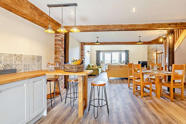 Monks Barn in Outwell, Norfolk, is a beautifully converted barn that offers a luxurious retreat for up to four people. This stylish accommodation features two bedrooms and one bathroom, making it perfect for couples or small families.