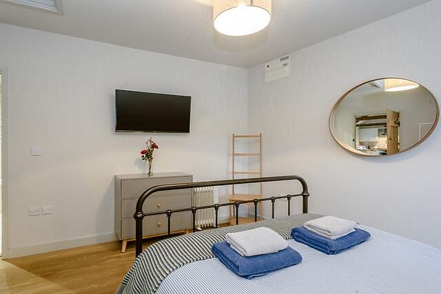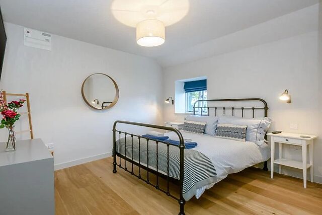 Accommodating up to four guests, the property features two sumptuous double bedrooms, each with its own en suite bathroom, ensuring privacy and comfort for all.