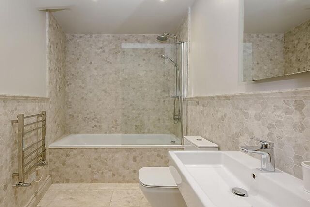 The property boasts two double bedrooms, each with its own en suite bathroom equipped with a bath and shower over, providing comfort and privacy for up to four guests.
