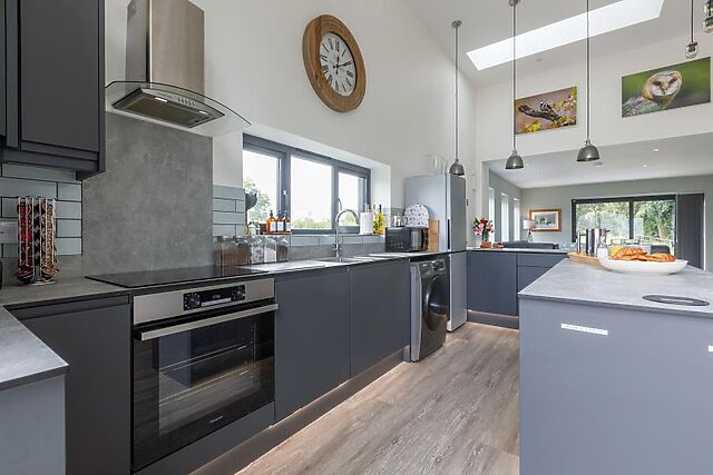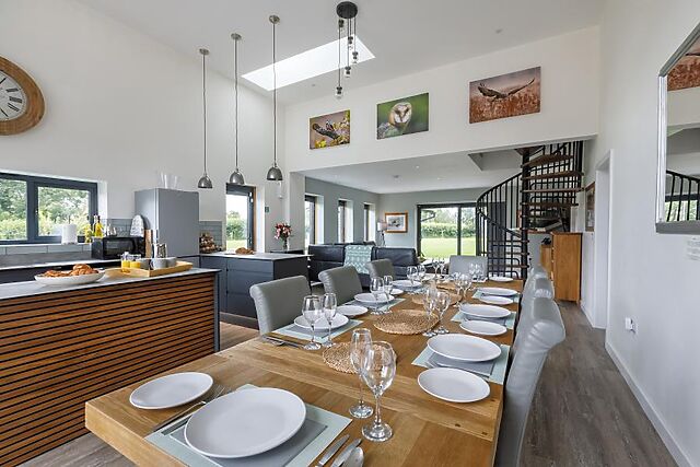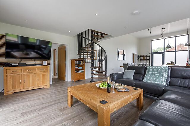 The ultimate country retreat awaits in the rural heart of Norfolk, just 12 miles from Thetford Forest and 14 miles from its namesake market town, Thetford. The converted barn sits on an 11-acre working farm, home to wildlife, ponds, a livery and a purpose-built dog kennel for those visiting with the company of four-pawed pals.