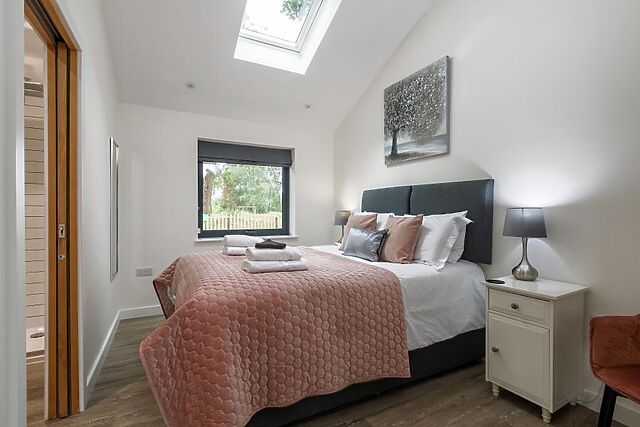 Each of the four king-size bedrooms has its own en-suite, only one of which is accessed up a flight of stairs. Three of the bedrooms offer direct access to the garden.