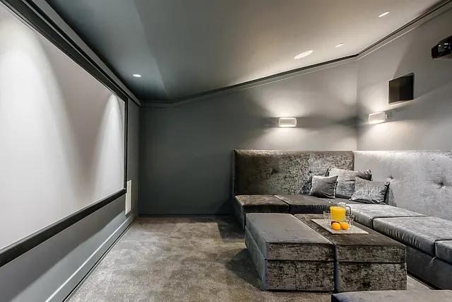 Indeed, the property features a cinema room complete with a screen and audio system, allowing guests to enjoy films in style and comfort.