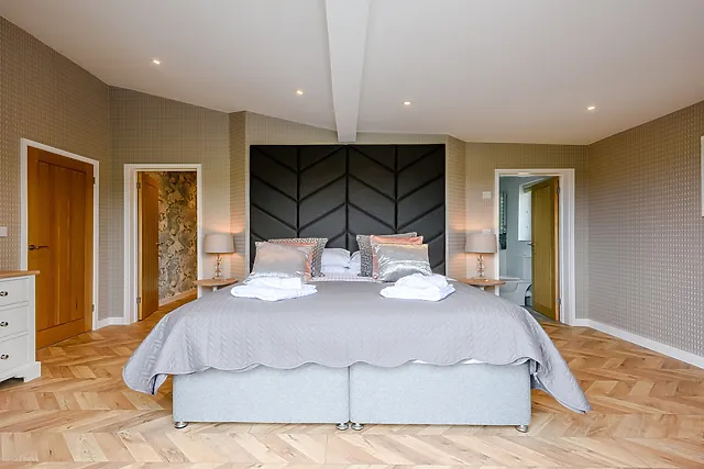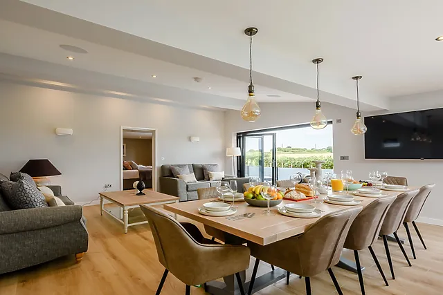 The accommodation boasts 5 ground floor bedrooms, including 1 king-size, 2 doubles, and 2 twins (one of which can be made into a king-size upon request), catering to a variety of group or family needs.
