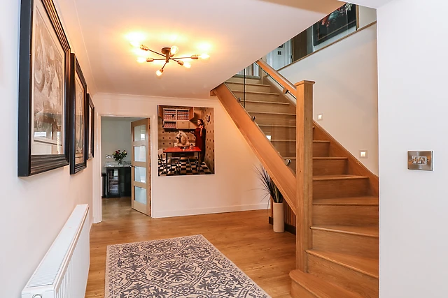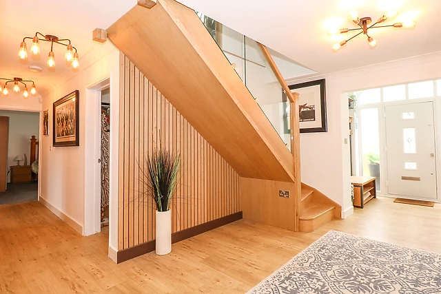 On the ground floor, you will also find three bedrooms and a family bathroom complete with a bath and a shower over. Upstairs, there is a double bedroom with exceptional sea views and a spacious twin bedroom with its own en-suite.