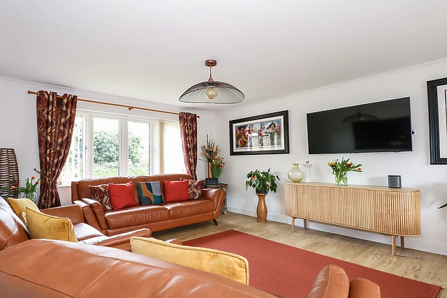 Upon entering the property, you will find a spacious hallway where you can store sandy shoes and walking gear before making your way into the open-plan living room. Large patio doors allow natural light to flood into the space, creating a bright and welcoming atmosphere.