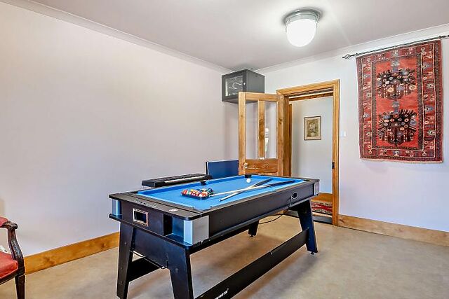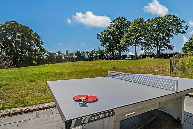 The ground floor also boasts a games room with air hockey, pool, table football, and table tennis, ensuring entertainment for all ages. The heart of the home is the spacious kitchen and dining area, ideal for enjoying meals together.