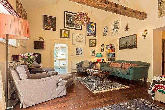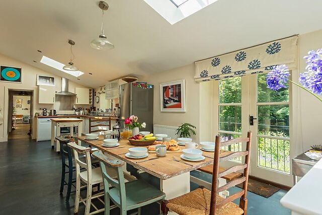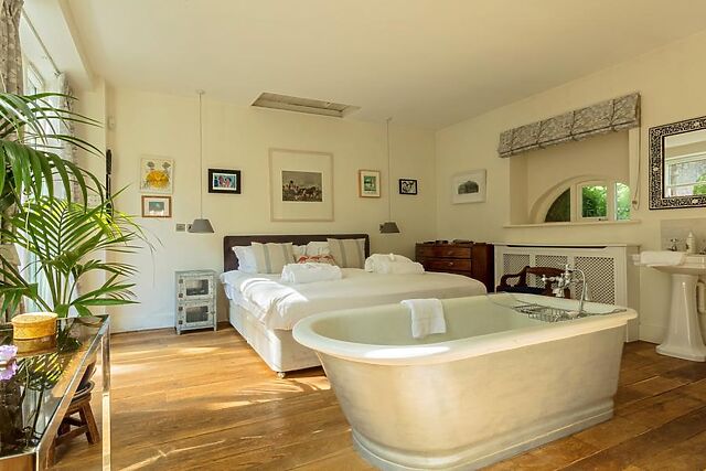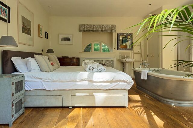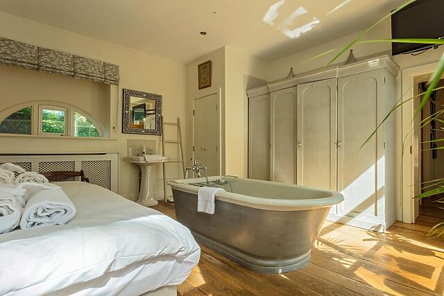 The ground floor features a master bedroom with a super-king-size bed and a roll-top bath, adding a touch of opulence to your stay.