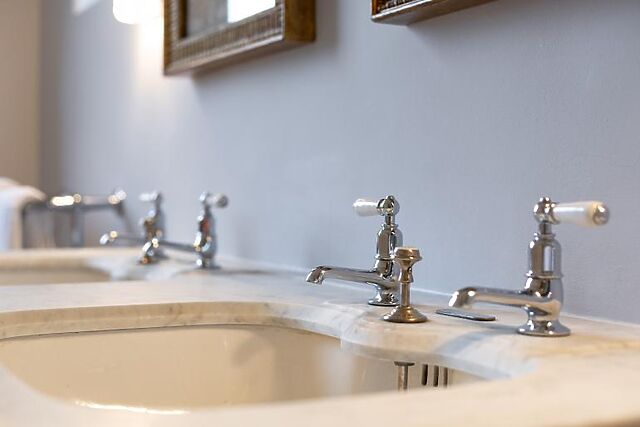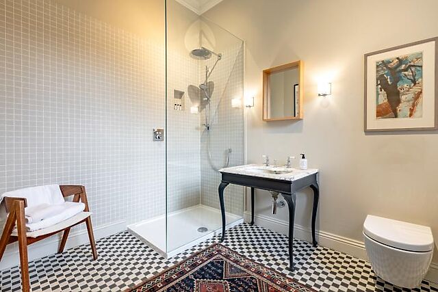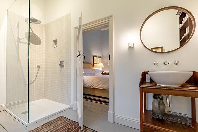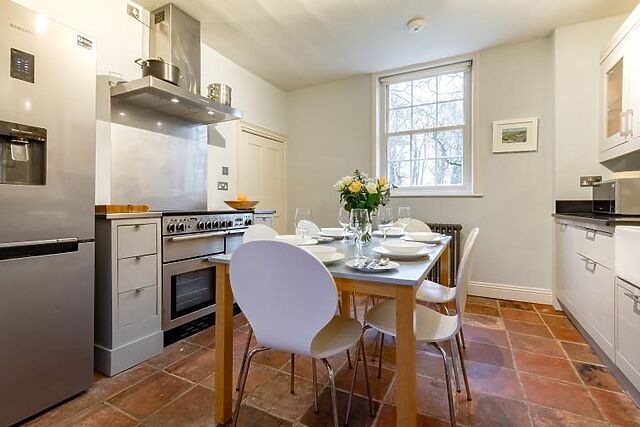 Upon entering, you are greeted by a solid oak kitchen equipped with modern appliances and a dining area. The ground floor includes two bedrooms, each with a king-size bed and en-suite facilities. The sitting room, with its open fire, provides a cosy space to relax. The third bedroom, located upstairs, boasts stunning views over the estate's walled garden.