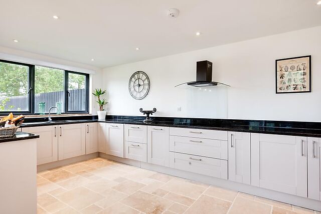 One super-king-size bedroom with an en-suite bathroom and a second with an en-suite shower room complete the downstairs features. Up on the first floor are three super-king-size bedrooms, each with a Smart TV and an en-suite bathroom.