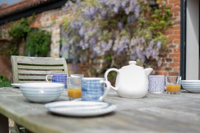 Welcome to The Old Cart Lodge, a stunning barn conversion in Rockland-St-Mary, Norfolk. This beautiful holiday home sleeps four people and offers a luxurious stay with its open-plan layout and stylish decor.