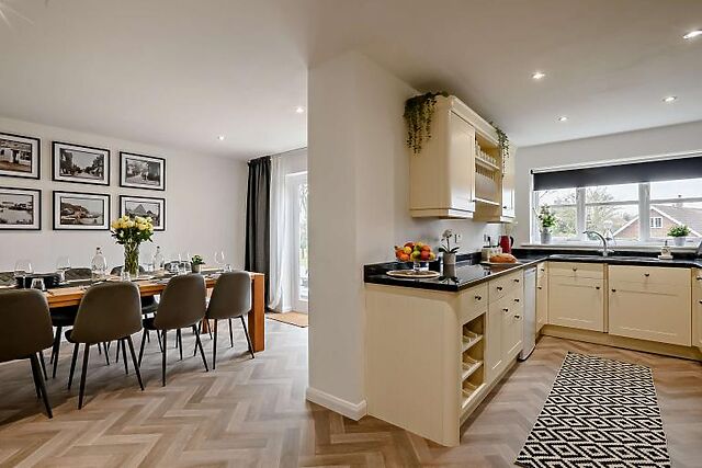 Inside, you'll find a spacious open-plan kitchen and dining area, ideal for communal cooking and dining.