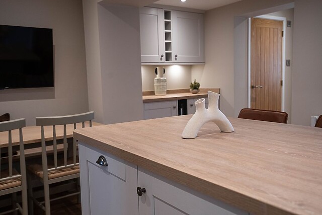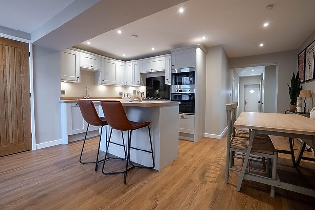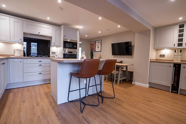 The kitchen/diner is a welcoming space, complete with a Smart TV, breakfast seating, and a dining table where you can enjoy scrumptious foods together. Curl up on the large corner sofa in the sitting room, where a crackling woodburning stove creates a relaxing atmosphere, perfect for unwinding after a day of exploring Suffolk.