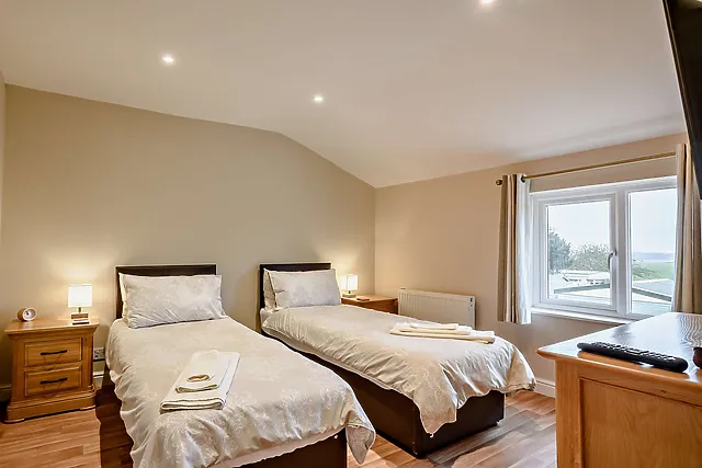 The accommodation features 4 bedrooms, including 2 doubles, 1 twin, and 1 king-size zip-and-link room, which can be arranged as a twin upon request.