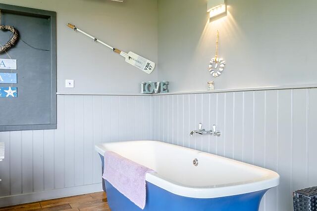 The king-size bed, complete with an electric blanket and extra throws, ensures a cosy night’s sleep, while the wonderful wood burner adds to the snug atmosphere. A love seat and TV with a DVD player provide a relaxing spot to unwind after a day of adventure.