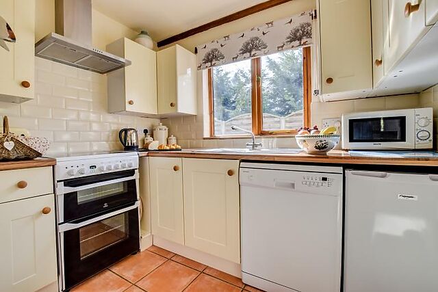 Step inside to find a bright and airy lounge/diner with cosy seating, a warming wood burner, and a Smart TV. The adjacent kitchen is fully equipped with modern appliances, including an electric oven, hob, microwave, and dishwasher. A shared utility room provides additional conveniences such as a washing machine and fridge/freezer.