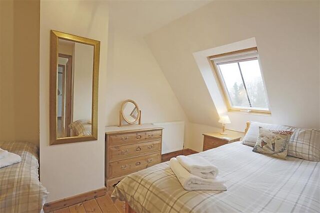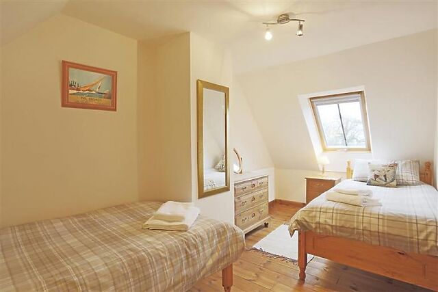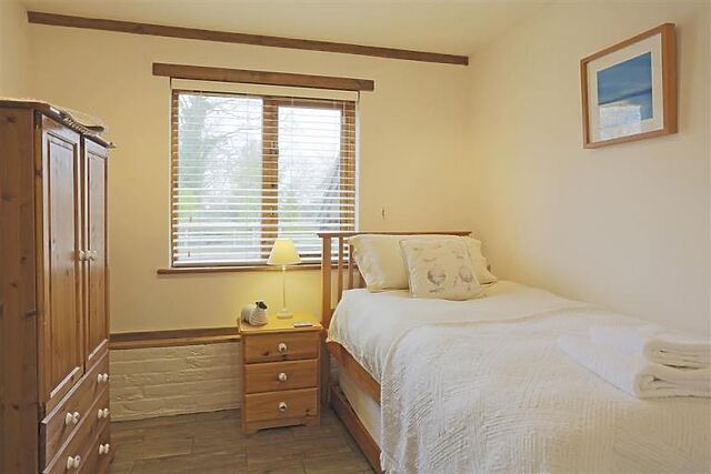 On the ground floor, you'll find a single bedroom with a pull-out bed and an en-suite shower room. Upstairs, there are two more bedrooms—a twin and a double—and a family bathroom with a shower over the bath.