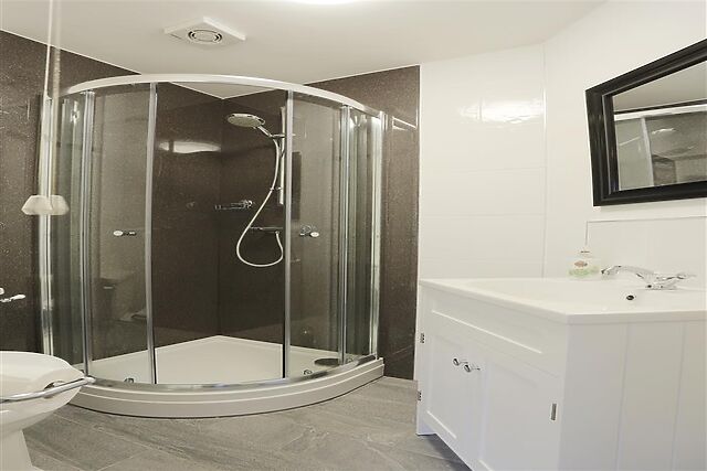 On the ground floor, you'll find a single bedroom with a pull-out bed and an en-suite shower room.