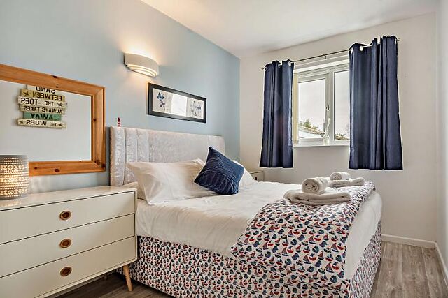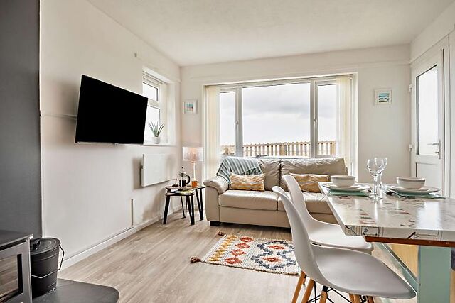 Step into the living and dining area where you can unwind by the wood burner, watch a movie on the smart TV, or simply enjoy the panoramic sea views. The galley kitchen is fully equipped for all your culinary needs, but if you prefer dining out, there are excellent pubs nearby.