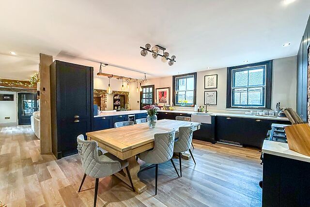 The snug has a wood burner and ample seating, perfect for having a chat while preparing a fantastic family meal. The central dining area is ideal for a family get-together, and the fully equipped kitchen is a pleasure to work in.